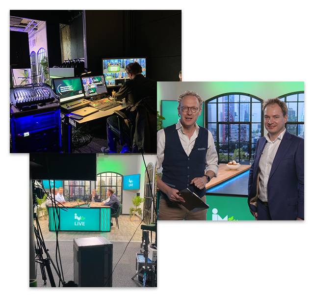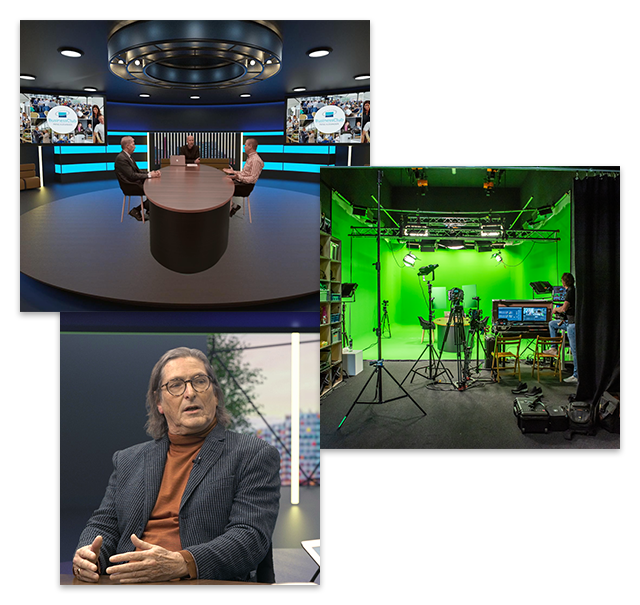 Laat je door ons de video streaming produceren dan kunnen we dat in onze eigen filmstudio verzorgen. Licht en geluid zijn perfect regelbaar, met het green screen kunnen we elke achtergrond nabootsen en sfeer oproepen. Door de dubbele glasvezelverbinding is het beeld stabiel. Ook op locatie is van alles mogelijk.
